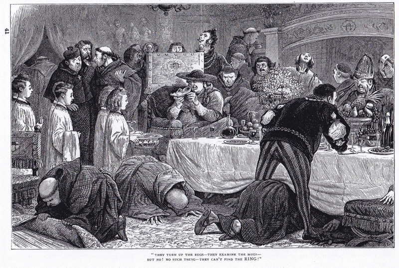 R. H. Barham. "The Jackdaw of Rheims". 1837.